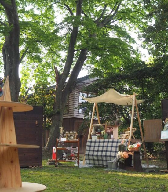 古道具のある立派な庭のマルシェでご利用いただきました。